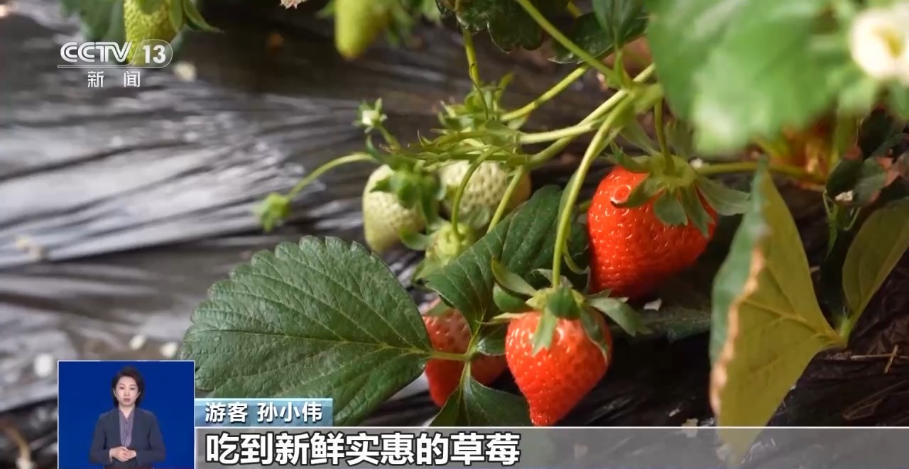 游客 孙小伟:孩子喜欢吃草莓,我们就带着孩子来采摘,既能带孩子出来玩,体验采摘乐趣,又能在家门口吃到实惠新鲜的水果,的确是个好地方。